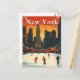 A beautifully illustrated postcard featuring a festive New York City ice skating scene under a glowing holiday sky. A timeless American Christmas moment perfect for collectors and travel lovers.