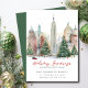 This festive Christmas holiday moving announcement features the saying "Holiday Greetings from Our New Home" with a beautiful watercolor city scene with scattered Christmas trees. The announcement is perfect for sending to friends and family during the holiday season to let them know about your new address. The front of the announcement features the saying and the watercolor snowy city street scene, and includes your new address and contact information. The overall design is festive and charming, and the announcement is sure to put a smile on the faces of your loved ones.