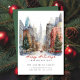 This festive Christmas holiday moving announcement features the saying "Happy Holidays from Our New Place" with a beautiful watercolor city street with a big Christmas tree. The announcement is perfect for sending to friends and family during the holiday season to let them know about your new address. The front of the announcement features the saying and the watercolor snowy city street scene, and includes your new address and contact information. The overall design is festive and charming, and the announcement is sure to put a smile on the faces of your loved ones.