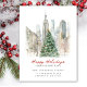This festive Christmas holiday moving announcement features the saying "Happy Holidays from Our New Place" with a beautiful watercolor city street with a big Christmas tree. The announcement is perfect for sending to friends and family during the holiday season to let them know about your new address. The front of the announcement features the saying and the watercolor snowy city street scene, and includes your new address and contact information. The overall design is festive and charming, and the announcement is sure to put a smile on the faces of your loved ones.