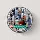 New York City button featuring a colourful photography of the artistical architectur of the city, the typical green and white city sign and the customisable text "New York City".