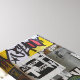 Features an original colour photograph of stickers and graffiti on a metal pole. Photographed in midtown Manhattan, New York City.