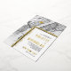 A unique wedding invitation card tailored to a wedding event in the city of New York City. It features an accurate topographical map of the city. It also features several special features that make an impression on your future guest, including the names of the bride and groom, and the city name in gold foil, including a gold foil heart symbol that pinpoints your location of love in the city. The heart symbol can be replaced with a variety of symbols. ---> ( ♥, ★ , ✘, 〇, ✔, ▼,➤ ) The city map is on the front and reverse sides and can be scaled and moved around. The invite also has an optional spot for the unique latitude and longitude coordinates of your city in gold foil. All elements of this invite are unlocked, so have fun being creative and making it unique to you!.