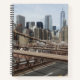 Standard size, spiral bound notebook for home, school, or office that features both front and back cover with a photo image of the Lower Manhattan skyline of New York City as viewed from the Brooklyn Bridge. Select your notebook style options.