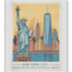 Vintage style New York City featuring the Manhattan skyline and the Statue of Liberty at sunset. Perfect for travel lovers and urban art fans.