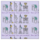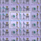 Fabric features various New York City buildings and landmarks "dressed up" for the holidays, with NEW YORK HANUKKAH in a purple font. Created from an original pen-and-ink illustration.