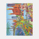 The painting features New York’s great landmarks: the Statue of Liberty, the Chrysler Building, the Empire State Building, perhaps the Guggenheim Museum, major skyscrapers, and other well-known structures.