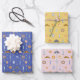 New York City pattern wrapping paper set - "Big Apple, Big Love." Captivating design showcasing Statue of Liberty, yellow taxi, Empire State Building, pretzel & iconic NYC coffee cup. 3 sheets in blue, yellow & pink. Embrace NYC's vibrant spirit & adorn your gifts with this bold artwork. Perfect for urbanites, NYC lovers & those drawn to pop art aesthetics.