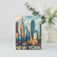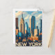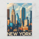 A vibrant illustration of a famous city skyline, featuring iconic skyscrapers and landmarks. The image captures the dynamic energy and architectural grandeur of the city, with its towering buildings and bustling streets. The overall style is bold and graphic, with a focus on the city's iconic skyline.