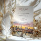 Ideal for urban weddings, this save-the-date card is a perfect introduction to a city-themed celebration, combining modern elegance with artistic flair. The sunset tones and detailed cityscape make it both a practical reminder and a beautiful keepsake.