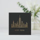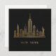 A clean and elegant graphic illustration featuring the iconic New York City skyline. Key landmarks like the Empire State Building and the Statue of Liberty are rendered in a minimalist, golden line art style. The text "NEW YORK" is written in a matching golden font below the cityscape. The design is set against a solid dark gray background, creating a sophisticated and modern esthetic.