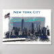 Brighten your decor with this travel poster featuring a beautiful watercolor illustration of the New York City skyline! The font and color of the text can be changed to fit your preference.