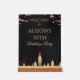 Welcome your party guests to a memorable birthday celebration with this chic New York City skyline welcome sign. The striking contrast of the black background and shimmering gold cityscape, accented with falling confetti, creates a sophisticated and celebratory atmosphere. This foam board is ideal for adding a touch of class and excitement to any milestone birthday party, particularly those with a New York theme or a desire for an elegant, art deco ambiance.