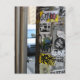 Features an original colour photograph of stickers and graffiti on a metal pole. Photographed in midtown Manhattan, New York City.