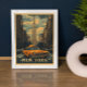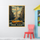Step back in time with this nostalgic travel poster featuring a classic yellow cab in front of the iconic Empire State Building. The Art Deco design and warm colour palette capture the timeless charm of New York City.