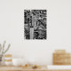 Poster in a semi-abstract pattern of New York City from an aerial perspective, in shades of grey / grey, black and white