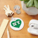 This keychain features a vibrant green heart containing the bold, white, upper case letters NY, the official abbreviation for New York state.