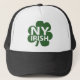New York Irish text over green shamrock graphic on trucker hat.