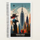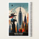 Experience the excitement of "New York: Land of Endless Possibilities" with this striking travel planner! This captivating travel planner showcases a silhouetted woman in a stylish hat, set against a retro-futuristic skyline filled with iconic skyscrapers. A large moon and celestial bodies add a cosmic flair, enhancing the scene's allure. With the tagline "New York: Land of Endless Possibilities," this artwork beautifully captures the essence of adventure and opportunity that defines the Empire State, inviting dreamers to explore its boundless horizons.