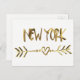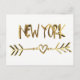 New York Love USA American City Elegant Heart with Arrow Gold Look Typography on White Background Postcard