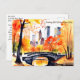 New York park fall watercolor well wishes thinking of you postcard. Watercolor New York central park with yellow foliage leaves bridge river