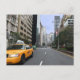New York is famous for it's yellow taxi cabs which you can see on this New York street.