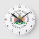 The clock did not take as long to arrive as I thought it might and was extremely well packaged. I didn't do the measurements so I didn't realize it is a little smaller than the average clock but that does not matter (just make sure you check if that's important to you).It is really nifty! It seems very solid and well made not flimsy at all. It has been going well and has kept good time in its few weeks on my wall. Nice product. Gets noticed too! Nicer in real life than the picture but true to the picture