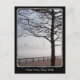A beautiful moody photograph of the New York skyline with Empire State building silhouetted in fog from the Hudson River, as seen through tree branches on the Hoboken riverside promenade, is surrounded by a graphic black and white picture frame. "New York, New York" is in white type on the bottom black border. Customisable - add your own message with the type tool