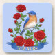 New York state symbols, the eastern bluebird and rose.