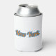 This custom can cooler features a design that displays the word "New York" in a Lobster print font with orange coloured letters blue outline in this custom state pride jersey style theme. Our can coolers fits any standard 12 oz cans and is customised on all sides including the bottom and made with high-density open-cell polyurethane collapsible foam material for easy storage.