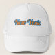 This custom trucker hat features a design that displays the word "New York" in a Lobster print font with orange coloured letters blue outline in this custom state pride jersey style theme. This hat is comfortable, casual and adjustable from 17 to 24" with a 100% nylon foam front and nylon mesh back great for everyday use or any special occasion.