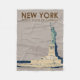 New York travel design in a retro style.. The Statue of Liberty is a colossal neoclassical sculpture on Liberty Island in New York Harbour in New York City.