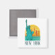 A beautiful Magnet representing the famous city of New York with its unique skyline and silhouette in the United States. This design features a stylised illustration of the city's unique cityscape with all the famous buildings and landmarks and the statue of liberty.