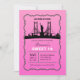 This eye-catching and trendy invitation is ideal to celebrate a birthday party with a New York theme. It features the silhouette of the Statue of Liberty, the George Washington Bridge and the New York City skyline on a pink gradient background. An ornate frame adds a chic look. Add your own party details.