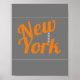 New York text design typography poster orange and grey for wall art decor in home or office.