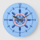 Beautiful and elegant acrylic wall clock on the theme of travelling around the world by sea. A blue anchor against the background of a dark blue helm or steering wheel. Both are stylised as if they are 3d objects. Two customisable template texts of red colour go around the helm. You can change or delete them independently. They are as follows: "ANY TEXT HERE OR DELETE THIS TEXT" on the top part, "NEW YORK * 40°40'04"N 74°02'26"W * UNITED STATES" at the bottom. The third template text "USNYC" is the international seaport code and is located at the bottom of the anchor. You are free to change or delete all of them as you please. You can also change the image. Please, use the "Edit Design" or "Personalise" (as the case may be) button of the blue colour to get to the "Designer Tool" where you can change everything, including font, colour of the background, etc. Just be creative, customise and buy one, enjoy, and be happy!
