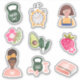 Chic, and girly new year new you resolution stickers. Our cute and girly sticker set features our own hand-drawn illustrations depicting different resolutions you want to achieve for the new year!. We've illustrated pink dumbells and a green kettlebell to represent getting fit and healthy. For eating more fruits and vegetables we've represent that resolution with avocado, kale, and a strawberry. The alarm clock represents getting more sleep. Cute pink planner book to illustrate getting organised. We've also incorporated a sweet caucasian girl wearing a yellow polka dot top and suspenders. Also incorporated into the pattern is a beautiful and sassy African American girl wearing a pink heart sweater, and a yellow bow in her hair. These adorable new year resolution stickers are perfect to start your new year and new you in style and help to motivate and achieve your new year resolutions and get organised. stick them on your planners, notebooks, calendars, etc. All illustrations are hand-drawn original artwork by Moodthology papery.