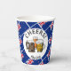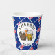 Patriotic NEW ZEALAND paper cup showing a tiled pattern of the flag of NEW ZEALAND in the background, with three beers and CHEERS! 'Kia Ora' (Maori) is also written at the bottom. Ideal for social Kiwi get-togethers, private parties, public celebrations, beer festivals, etc. Matching items are available in the NEW ZEALAND Collection by Berean Designs..