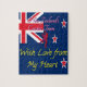 The artwork features a stylised representation incorporating elements associated with New Zealand cricket. A portion of the New Zealand flag is visible in the upper left corner. The text "New Zealand's Cricket Team" is prominently displayed, along with a silhouette of a cricketer in action. Three stylised stars, reminiscent of those on the New Zealand flag, are scattered across the design. The phrase "With Love from My Heart" is placed at the bottom, conveying a personal message of support.