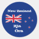 STICKERS (Round): New Zealand Flag & Kia Ora greeting, New Zealand - love my country, travel, holiday, letter seals, national patriots / sports fans