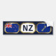 Bumper sticker displaying an attractive combination of the New Zealand flag, map and 2 letter country code.
