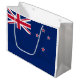 This design features the national flag of New Zealand, an island nation in the southwestern Pacific Ocean. The country is made up of two main landmasses, the North Island (Te Ika-a-Māui), and the South Island (Te Waipounamu), as well as around 600 smaller islands. New Zealand is about 1,200 miles east of Australia across the Tasman Sea and 600 miles south of the islands of New Caledonia, Fiji, and Tonga. The capital city of New Zealand is Wellington, while its largest city is Auckland; both cities are on the country's North Island. Other major cities in New Zealand include Christchurch, Hamilton, Tauranga, Dunedin, Lower Hutt, Palmerston North, Napier and Hibiscus Coast.