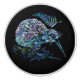 Classic New Zealand kiwi in the vibrant colors of the Paua shell.
