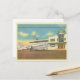 Newark, New Jersey vintage reproduction postcard from the late 1940s featuring the airport and the new administration building, with an aeroplane parked in front.