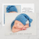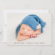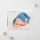 Announce your baby's arrival with our simple birth announcement, featuring a horizonal photo of your little one with their first name beautifully overlaid in grey sans serif font. You can personalise the announcement with your baby's middle and last name. On the back, there's space for an additional picture, along with birth statistics and a personal message.