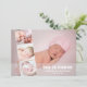 Newborn Baby Girl 4 Photo Collage Pink Birth Announcement.