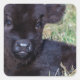 Newborn black scottish highlander calf lying square sticker