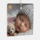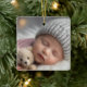 This is a lovely ornament, and great that you personalise the back with details of birthday, weight, etc.. My only tiny disappointment is the "My First" doesn't stand out very well on the background. More than happy with the printing of the photo and the writing on the back.
