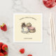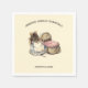 Paper napkins for a baby shower with a newborn mouse in the arms of her mother, while she's babysitting three kids rocking in the crib nearby. Customise with the name of the new addition and birthday or party location.
