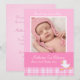 A sweet pink newborn baby announcement card featuring a cute duck and check pattern. Personalise with your details and a special photo of your daughter. A great way to announce your new arrival to family and friends.